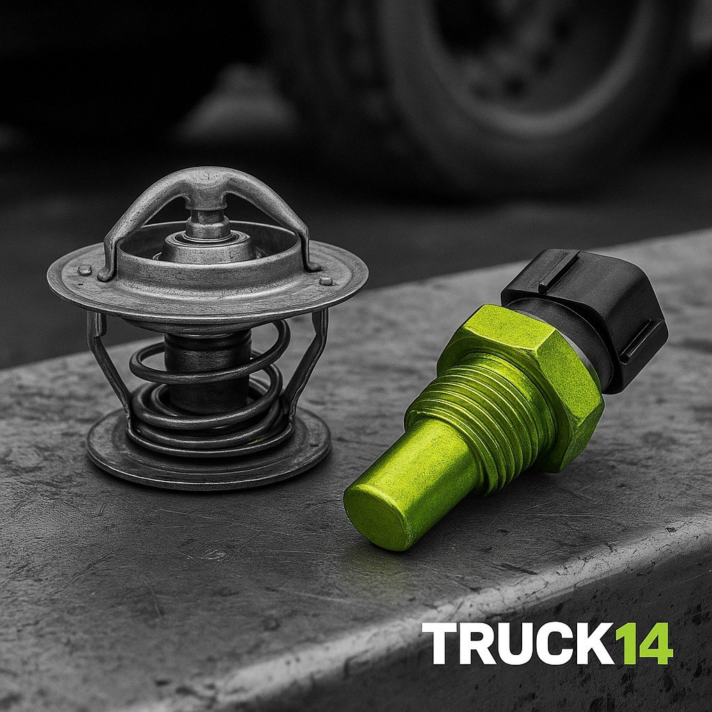 #Обзор ❄️ В северных районах термостат и датчик температуры — это не «железки за тысячу». От них зависит, переживёт ли мотор зиму. На КАМАЗах, МАЗах и FAW я видел одно и то же: если поставить дешёвый датчик или слабый термостат — двигатель работает вслепую. Вот что важно при выборе. 1️⃣ Термостат — только с жёсткой калибровкой 📍 Для севера оптимально открытие в районе 80–85 °C. Меньше — мотор не прогреется, больше — рискуете перегревом в подъёмах. 📍 Корпус — латунь или усиленный алюминий. Тонкая сталь на морозе ведёт себя плохо: залипает. 2️⃣ Пружина и воск — маркер качества 📍 Дешёвые термостаты залипают при –30…–40 °C. Хорошие держат ход даже при отрицательных температурах. 📍 По опыту: если шток идёт мягко — ставить нельзя. 3️⃣ Датчики температуры — без «китайского рандома» 📍 На FAW, Dongfeng и старых МАЗах дешёвые датчики дают ±10–15 °C погрешности. Мотор кипит, стрелка стоит ровно. 📍 У надёжных — латунный корпус, ровный график сопротивления, и самое главное: стабильность н
