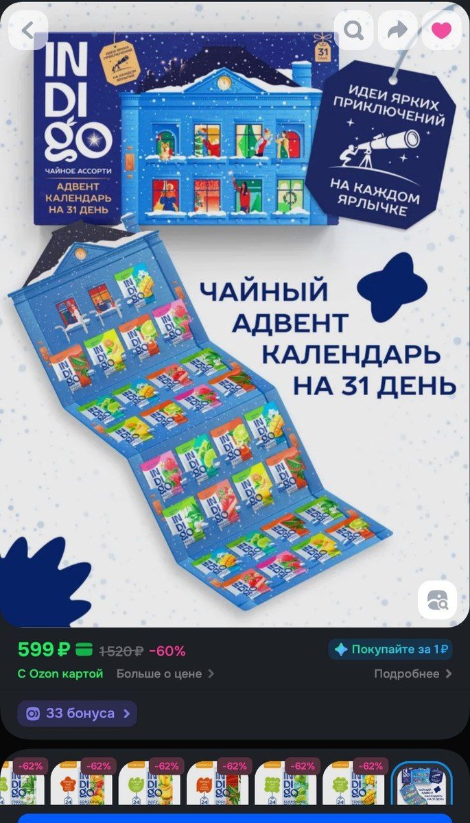 Чайное Ассорти Indigo, Подарочный Зимний Адвент календарь на 31 день. 31 пакетик, 8 вкусов
