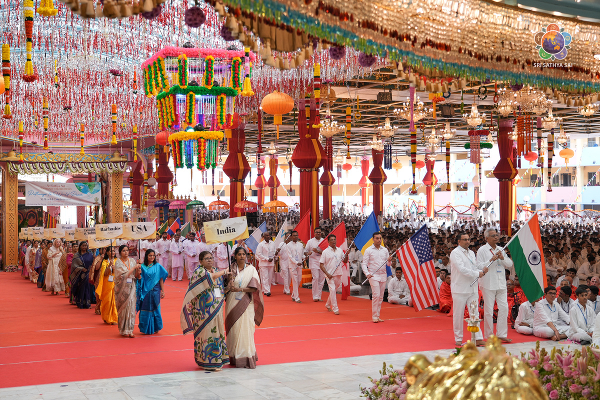 🙌 Насладитесь Божественной атмосферой Прашанти Нилаям Новости Прашанти XI Всемирная конференция Шри Сатья Саи |Вечерняя программа Празднование 100-летия Бхагавана Шри Сатья Саи Бабы 20 ноября 2025 г. Вечернее собрание первого дня XI Всемирной конференции Шри Сатья Саи, которое состоялось 20 ноября 2025 года в Прашанти Нилаям, стало безмятежным и возвышающим продолжением центральной темы дня — «жить всеединством». В то время как утро приглашало делегатов прославлять вечную природу Бхагавана, вечер мягко направлял их к воплощению Его послания в мыслях, словах и действиях. Собрание началось с проницательного выступления господина Виджая Менона, который подчеркнул, что истинная суть духовности заключается в практике, а не в теории. Он напомнил всем, что величие Аватара проявляется только тогда, когда люди живут в соответствии с ценностями. Его послание подчеркнуло призыв Свами перенести знание из пустаки (книги) и мастаки (головы) в хастаку (руку), ибо именно через действие божестве