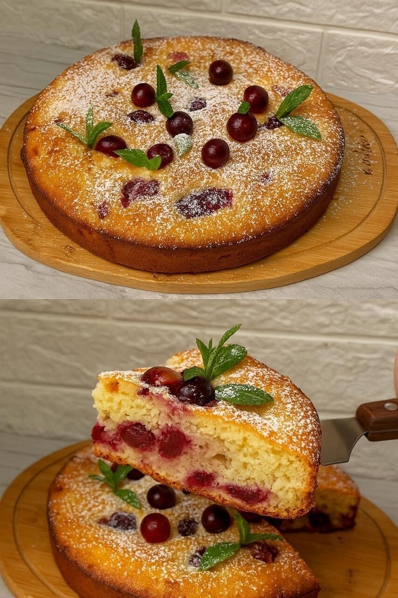 САМЫЙ ПРОСТОЙ И САМЫЙ ВКУСНЫЙ ВИШНЁВЫЙ ПИРОГ 🍒🔥ВСЁ СМЕШАЛ — И В ДУХОВКУ! МЯГКИЙ, СОЧНЫЙ, С ЛЁГКОЙ КИСЛИНКОЙ — ТОТ САМЫЙ РЕЦЕПТ, КОТОРЫЙ ВСЕГДА ВЫРУЧАЕТ! 😍☕ ИНГРЕДИЕНТЫ ✅ Яйца — 3 шт ✅ Сахар — 150 г ✅ Кефир — 100 мл ✅ Разрыхлитель — 10 г ✅ Растительное масло — 70 мл ✅ Мука — 250 г (плюс-минус) ✅ Ванилин ✅ Вишня — 200 г ПРИГОТОВЛЕНИЕ 1. В миске смешать яйца и сахар до однородности. 2. Добавить тёплый кефир и растительное масло, хорошо перемешать. 3. Просеять муку с разрыхлителем и ванилином, соединить с жидкими ингредиентами. 4. Перелить тесто в подготовленную форму. 5. Сверху выложить вишню (или другие ягоды по вкусу). 6. Выпекать в разогретой до 180°C духовке до готовности (ориентируйтесь на сухую шпажку). ПРИЯТНОГО АППЕТИТА! 🍒🍰