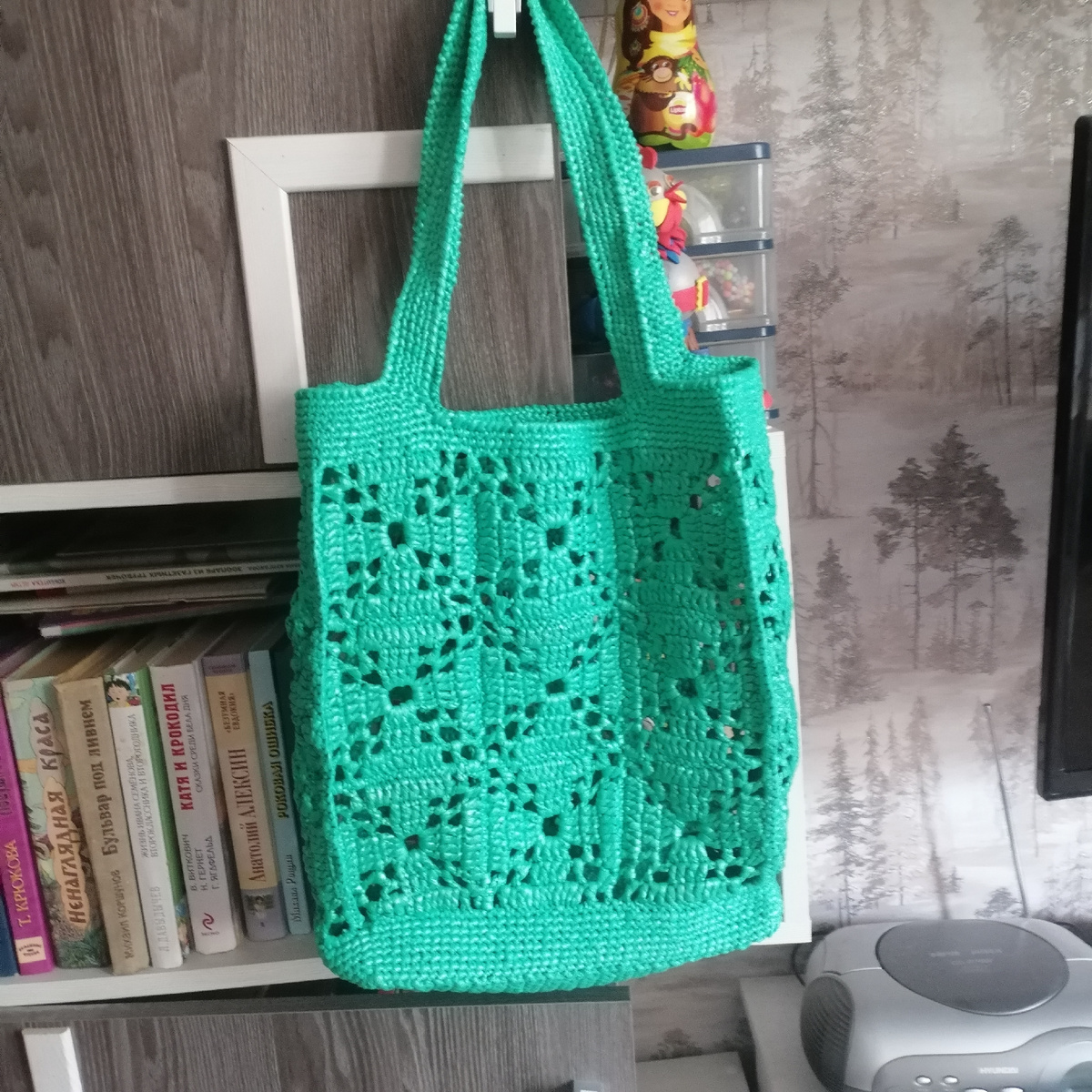 Здравствуйте, уважаемые подписчики! Извините, что надолго пропала.... Какое-то настроение было неважное, а когда настроение такое, то получается льется сплошной негатив, причем во всём.. В поступках, словах... Вот я и не стала вас грузить своим негативом, а сидела и зализывала свои раны и шрамы.... И так....., относив гипс почти два месяца, я наконец-то от него избавилась, УРА-УРА! И сразу же кинулась к рукоделию, но не тут-то было.... Рука-то не работает, пальцы просто не сгибаются, но я же упёртая, лучше лишний раз гимнастику для руки не сделаю, а лишних 30 минут посижу с вязанием. Вот наконец-то довязала сумку. Такого у меня ещё не было.... Обычно, когда что-то задумываешь уже видишь, как это примерно будет выглядеть... Здесь же сразу пошло не по плану, связала квадраты и стала ждать ручки для сумки..., но они не оправдали моих ожиданий, дождалась других.... Вот всем они хороши, но опять-таки сумка для них оказалась грубоватой что ли. Пока вязала, отношение к сумке менялось пос