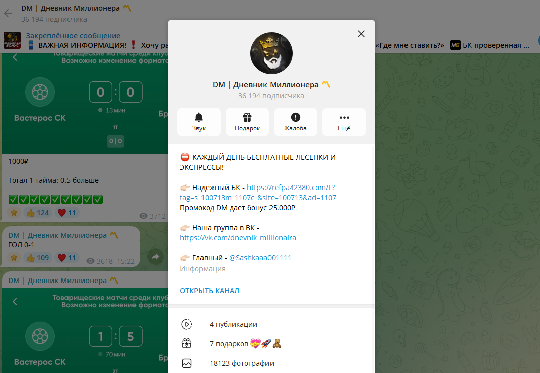 Канал DM | Дневник Миллионера обещает своим подписчикам «железные прогнозы», «высокий винрейт» и «стабильный доход на ставках». Авторский дуэт — Саша (@Sashkaaa001111) и Edward DM — уверяет, что их ставки проходят почти всегда, а результаты подтверждены купонами из БК. Но за этими сказками скрывается классическая схема развода капперов на деньги, подмена статистики и игры на доверии. 👉 Кстати, вот проверенный способ заработка, который точно не имеет отношения к капперам. Канал создан в 2022 году, но за это время он уже успел несколько раз менять название — это характерный прием мошенников, которые смывают старую репутацию и создают видимость нового чистого проекта. Это типичная накрутка ботами, чтобы создавать иллюзию популярности. Комментарии закрыты везде — потому что критику надо прятать. О Саше и Эдварде не известно ровным счётом ничего: Все «доказательства успеха» — купленные отзывы и липовые купоны из офшорной БК. ● «Красивые купоны» — так любят делать все попаны, которые рисую