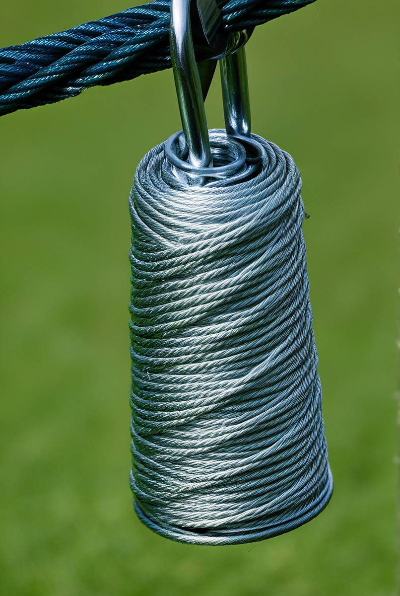 - Выполняется заделка концов троса. Самый распространенный способ — использование специальных элементов‚ таких как зажим для троса. Для надежности устанавливают минимум 3 зажима.