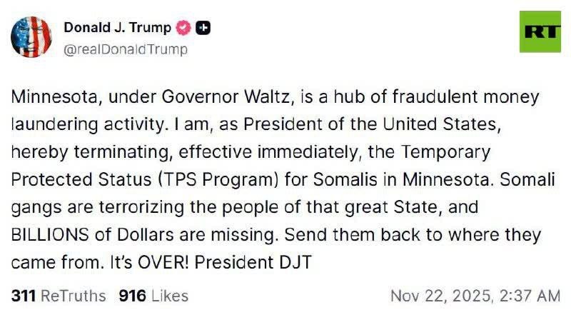 Trump ENDS Somali protected status in US state