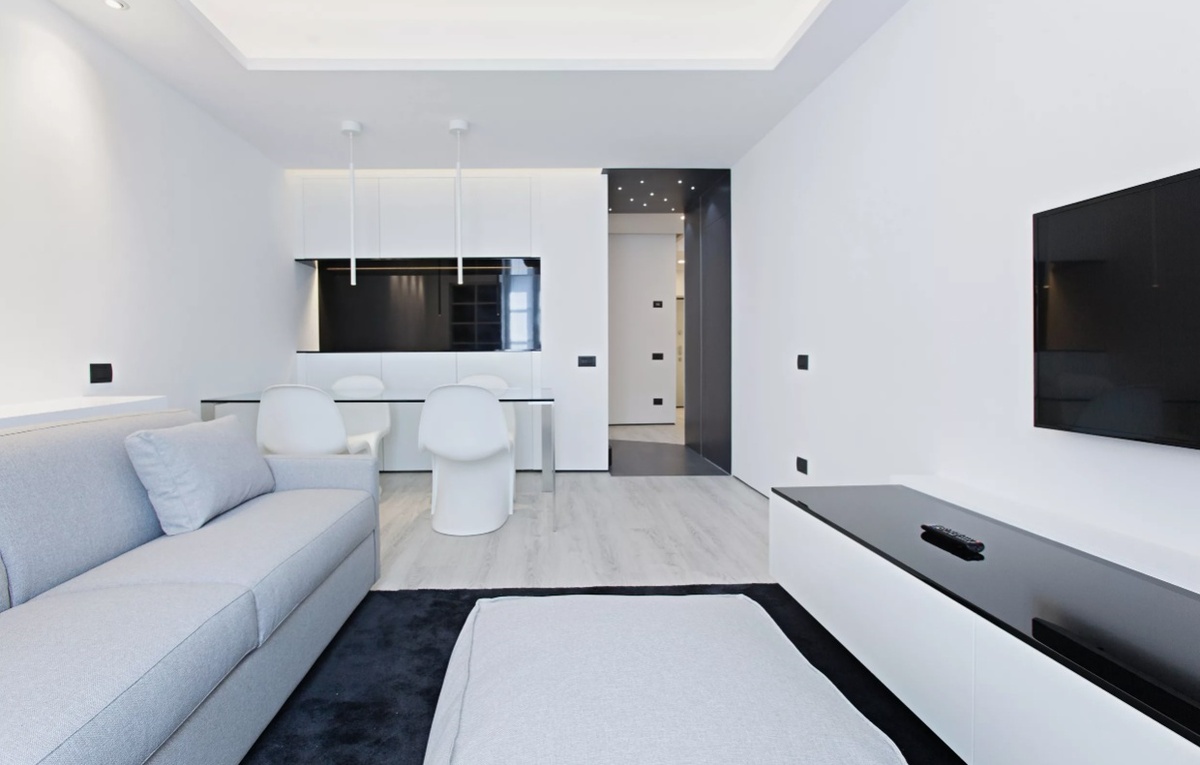 Открытое пространство легче поддерживать в чистоте: нет углов и труднодоступных мест, характерных для многокомнатных квартир. - Гибкость дизайна.