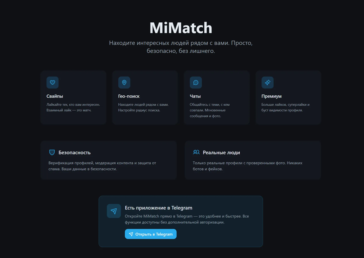 MiMatch — честное приложение для знакомств в Telegram, замена Tinder