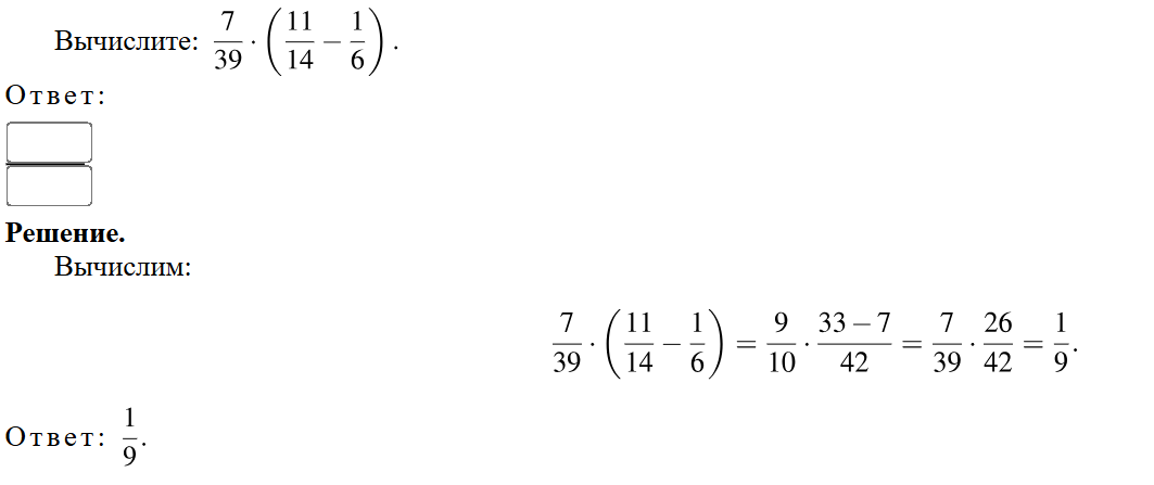 Обыкновенные дроби. 6 класс. Пример. Решение.