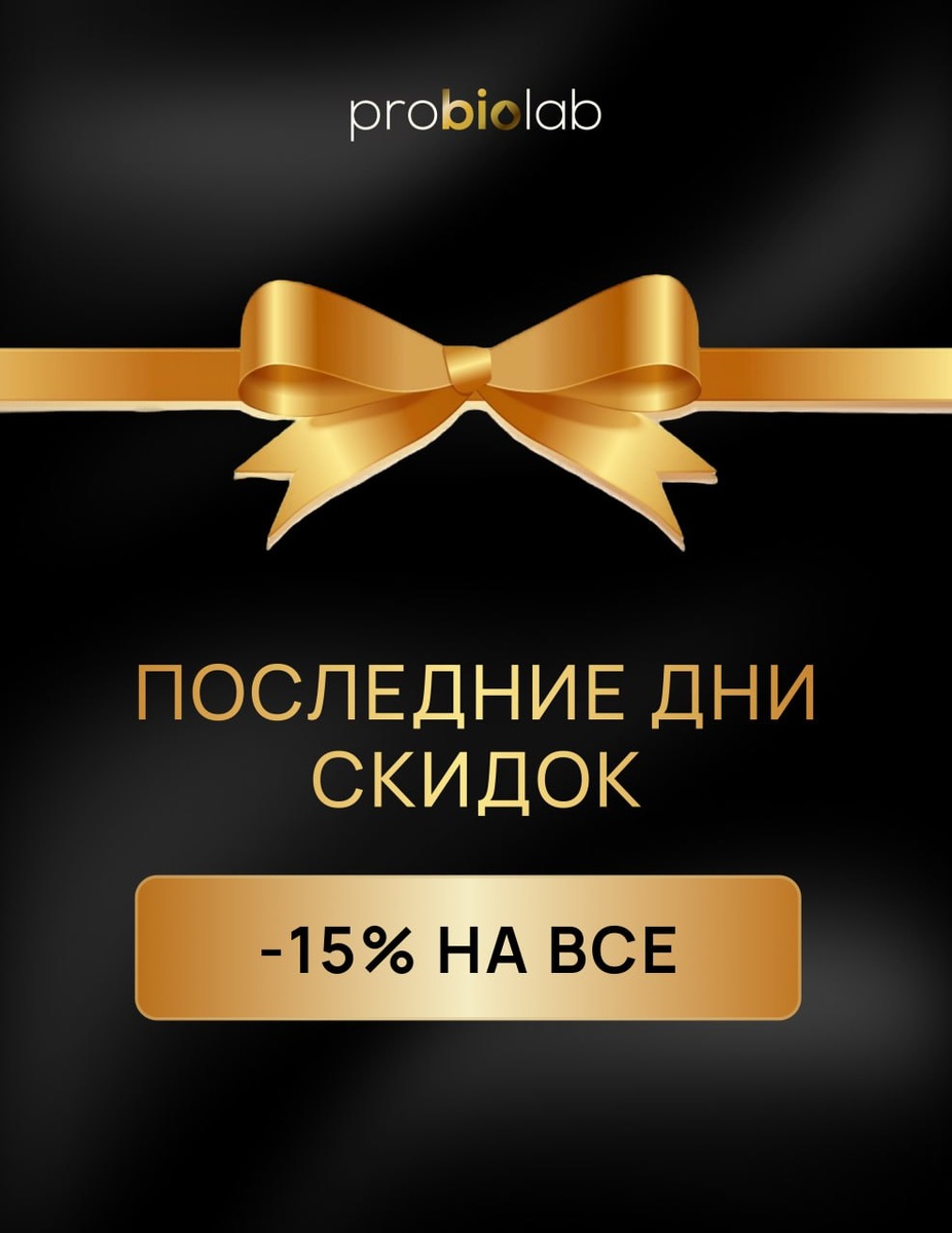 Самая большая неделя скидок подходит к концу🤍 На следующей неделе мы с вами встретимся на двух крупнейших мероприятиях, ждите новостей! А мы благодарны вам за доверие и выбор продуктов Probiolab. Напоминаем, что сегодня и завтра последние дни действия скидок на все продукты. - 15% скидка на все добавки Probiolab! До 23:59 23.11.2025 у вас есть возможно заказать все самое необходимое по самым лучшим ценам🫶🏻 🔗ОФОРМИТЬ ЗАКАЗ 🔗ОФОРМИТЬ ЗАКАЗ 🔗ОФОРМИТЬ ЗАКАЗ Правила акции: 🌟 Акция действует с 17.11.2025 до 23:59 23.11.2025 по Москве; 🌟 Скидки не распространяются на наборы и курсовые приемы, не суммируются с другими промокодами.