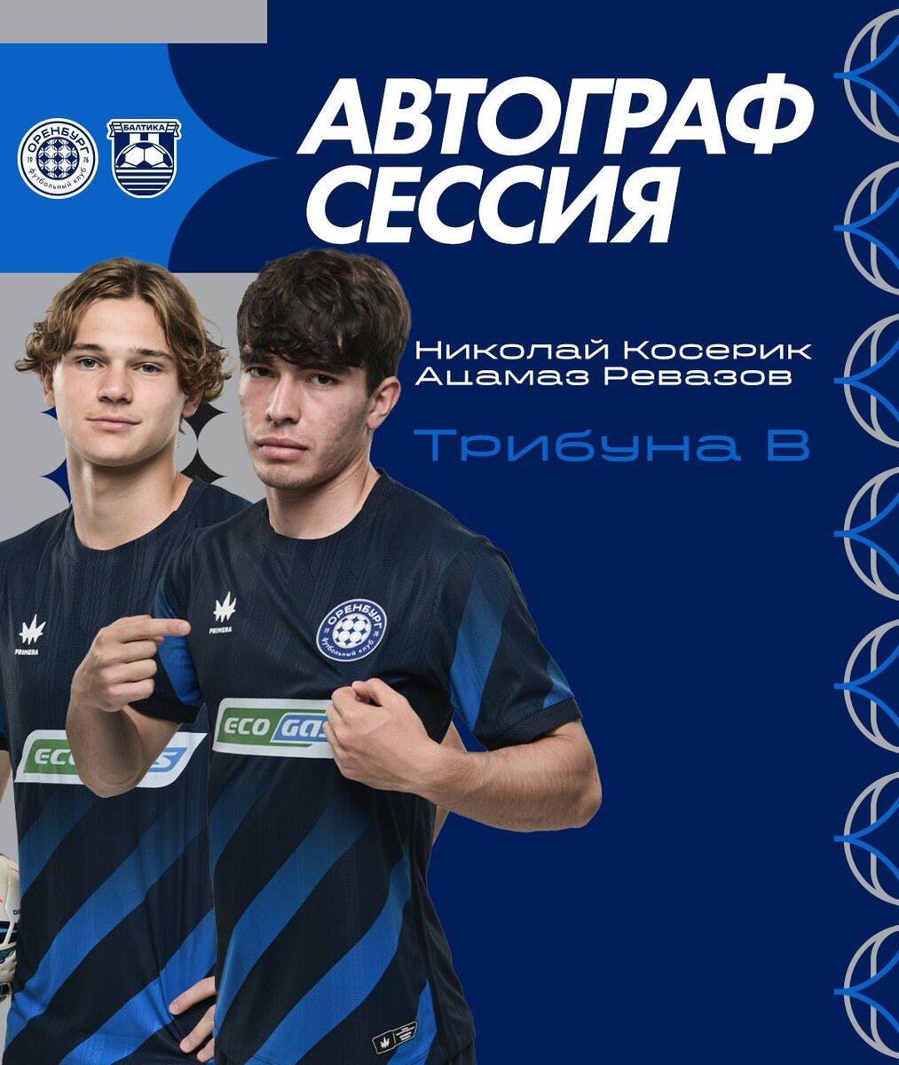 Автограф-сессия ✍🏼 В перерыве матча ⚽️🤍 Ацамаз Ревазов и Николай Косерик будут ждать вас в специальной зоне стадиона – трибуна «В». #ФКОренбург #ОренбургБалтика