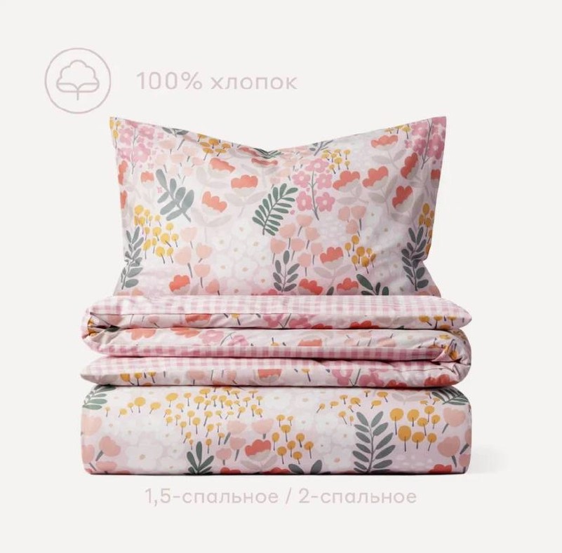 💬 Отзыв на постельное бельё Pragma, которое я взяла за 1234 ₽ Совсем забыла поделиться впечатлениями, а комплект получился реально интересным по качеству и цене. Что понравилось: 🪰Расцветка красивенькая, яркая, прям настроение поднимает. 🪰Пододеяльник двухсторонний: с одной стороны цветочный принт, с другой — клетка. Смотрится очень мило. 🪰Швы ровные. 🪰Никаких торчащих ниток нет. 🪰Размер идеально подошёл под мои ikea-шные подушки и одеяло. Что смутило: У этого комплекта нигде не указан тип ткани. Просто написано «хлопок». Но хлопок бывает разный — перкаль, бязь, поплин… У меня дома много перкаля, и по ощущениям этот комплект отличается. Ткань плотная, но не такая «матовая и гладкая», как хороший перкаль. Пошла даже в интернет смотреть плетения, сравнивать картинки — и всё равно ничего не поняла 🕺 По ощущениям похоже либо на бязь, либо на поплин. Бязь обычно чуть более плотная и «жёсткая», а поплин мягче, но с заметной текстурой. Я взяла картинку с плетением из карточки то