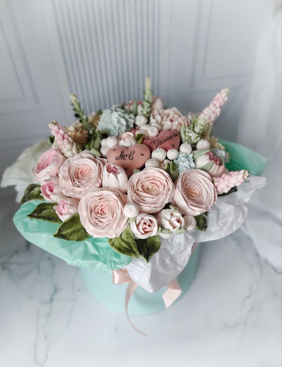 🌸Сегодня собирала большой и впечатляющий букет — 40×45 см! Такой размер выбирают для особых моментов, когда важно создать эффект и подчеркнуть значимость события. В этом букете всё продумано до мелочей: • Именные сердечки из шоколада — персонализированный подход из бельгийского шоколада, который трогает до глубины души; • Цветы из нежнейшего зефира — воздушные, красивые и очень вкусные; • Нежная, спокойная палитра — я обожаю такие "некричащие" оттенки, они создают ощущение гармонии и уюта. Такой букет станет незабываемым подарком. Хотите нечто особенное? Пишите! ❤️