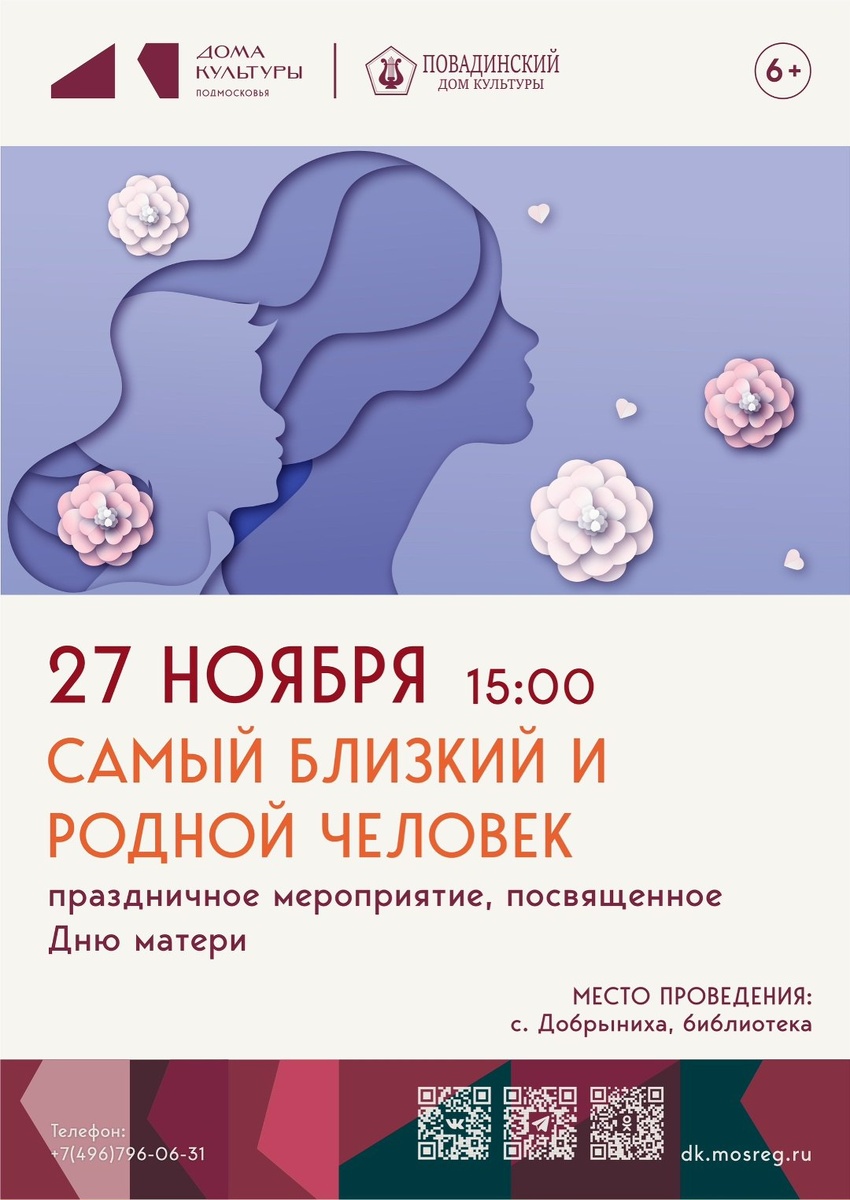 ✨ 🌸Жители с. Добрыниха, мы напоминаем, что уже совсем скоро наступит прекрасное событие - праздничное мероприятие, посвящённое Дню матери. Для вас выступят артисты Дома культуры, а наших любимым мам ждёт вечер поздравлений и приятных слов🌸 🚫 Возраст: 6+ 📆 27.11.2025🕒15:00 🏢 Повадинский сельский дом культуры (СДК) 📍 г.о.Домодедово, с.Вельяминово, 10, Центральная площадь ✅ Мероприятия Домодедово https://dzen.ru/id/66f10385cc4c5a16f7b5fb02 http://vk.com/domodedovo_events http://dzen.ru/domodedovo_events