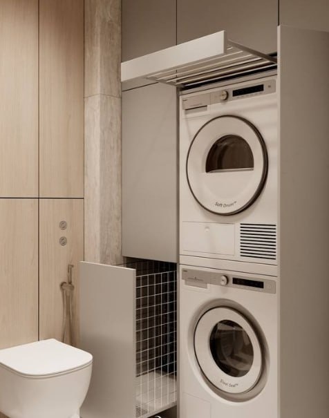 Когда речь заходит об организации небольших пространств, современный дизайн предлагает десятки решений, которые делают интерьер функциональным, аккуратным и визуально лёгким. Мы поговорили с дизайнером Марией Батищевой о том, как применить эти решения на практике и превратить маленькую ванную в действительно удобное и продуманное пространство. 1. Встроенная сушка для белья Если нет лоджии, а размещать сушку в жилой зоне совсем не хочется, отличным решением станет встроенная система в мебельной конструкции ванной комнаты. Благодаря тёплой стене с матом тёплого пола и регулятором температуры вещи высыхают в разы быстрее. Альтернативный вариант — выдвижная конструкция, которая также не занимает лишнего места. 2. Аккуратная интеграция ёршика и бумаги Неэстетичные аксессуары больше не нужно выставлять напоказ. Современные системы позволяют встроить держатель для туалетной бумаги и ёршик прямо в стену за инсталляцией. Чисто, удобно и визуально легко. 3. Умные влагостойкие системы хранени