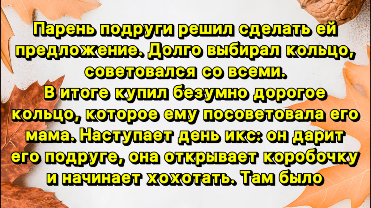 Парень моей подруги решил сделать предложение. Долго выбирал кольцо и в итоге купил безумно дорогое — то, что посоветовала мама. Когда подруга открыла коробочку, она расхохоталась: внутри была огромная печатка на несколько размеров больше. Она сказала «да», но ощущение было, будто ее принимают в тайное общество, а не делают предложение руки и сердца.