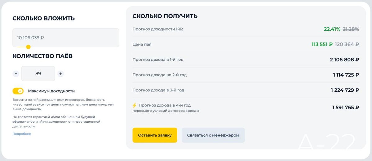 ⚡️ Рассчитайте свой доход от инвестиций в фонд «Активо двадцать два