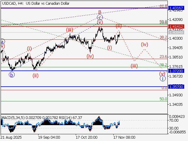USD/CAD: анализ и прогноз волн Эллиотта на 21.11.25 – 28.11.25