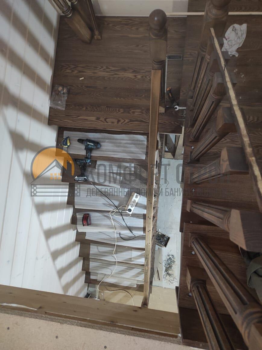 Монтаж лестницы от наших мастеров. П-образная лестница с одноуровневой площадкой и необходимым ограждением. Ступени: Ясень , остальное сосна. Покраска: масло Biofa Цена: 295 000 рублей. Нужна деревянная лестница? Обращайтесь к профессионалам! +7 (911) 511-34-72 — Александр