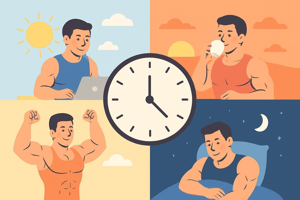 Каждый кто занимается в тренажерном зале знает, что для прогресса важны не только сами тренировки но и сон, питание и восстановление. По крайней мере об этом знают мои подписчики, вед я уже писал об этом статью))) Однако за этими процессами стоят- наши циркадные ритмы. Это врожденные, примерно 24-часовые циклы, которые регулируют практически все физиологические процессы, включая работу гормональной системы. Понимание того как "тикают" наши внутренние часы может стать ключом к максимальной силе, росту мышц и эффективному восстановлению. Циркадные ритмы- это биологические часы организма, синхронизированные со сменой дня и ночи. Эпицентр этих ритмов- супрахиазматическое ядро в гипоталамусе мозга. Оно получает сигналы о освещенности от глаз и «переводит стрелки» всех периферийных часов в клетках тела, включая клетки мышц, печени и эндокринных желез. Гормональная система будучи одной из главных систем регуляции- жестко подчинена этим циклам. Давайте рассмотрим как циркадные ритмы влияют на