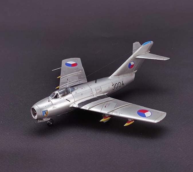 МиГ-15 бис Александр Eduard, 1:72 ================================ МиГ-15бис в 1:72 - первая модель из набора "Чехословацкие пятнашки" от Eduard. Модель выполнена в позднем варианте истребителя-бомбардировщика с подвешенными чехословацкими НАРами, с умеренным панельным эффектом, подтверждённым фотографиями самолётов этого полка, и с умеренными загрязнениями. Использовались родные допы из коробки - фототравление и смоляные пилоны с ракетами. Металлику модели местами досталось от лака Tamiya TS-13, но в целом результат хорош. ================================ ===============================