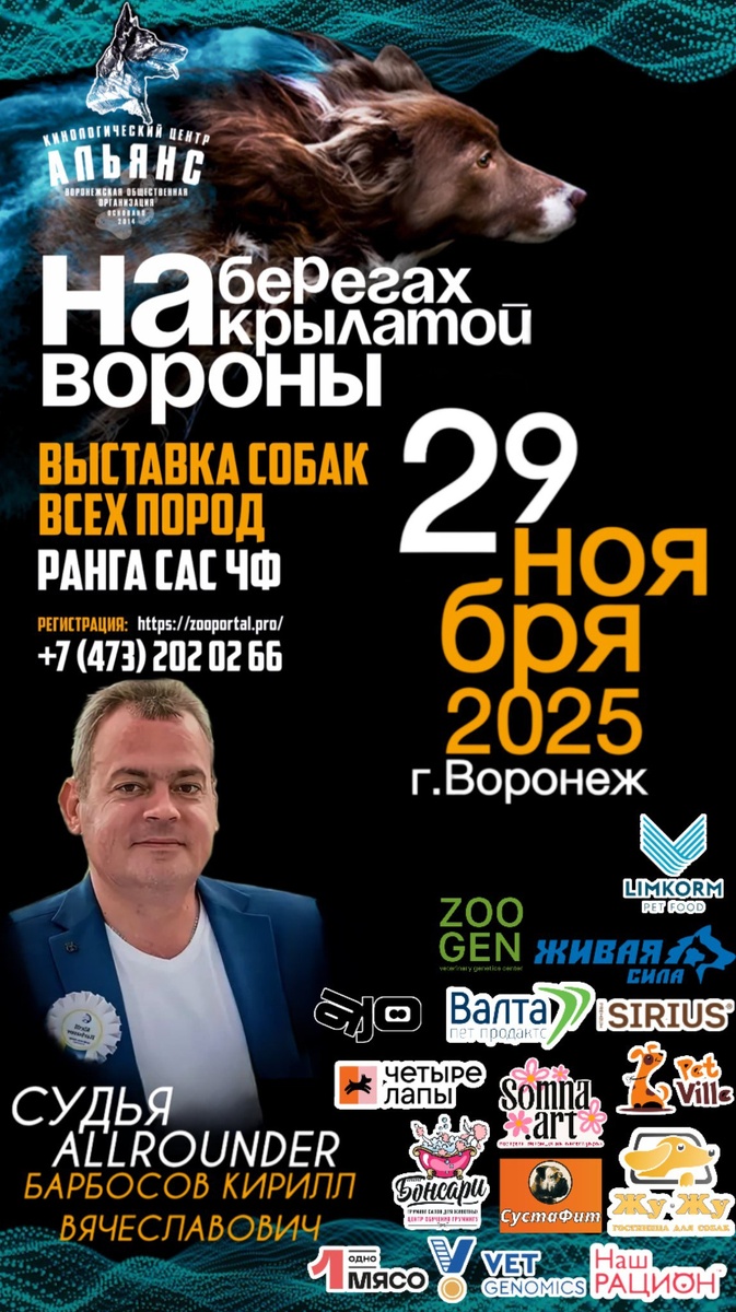 ⏰ 29 ноя (7д) 🏛 #Воронеж #Россия #Выставка 🐶 Выставка собак: На берегах крылатой Вороны 🏆 Кинологический центр "Альянс" Контакты организаторов здесь: 🌐 https://www.petsman.ru/vystavki-sobak.php?mesto=18-voronezh Все породная выставка собак "На берегах крылатой Вороны" ранга САС /ЧФ Племенной смотр Пателла По старым традициям мы проводим розыгрыш на участие в выставки 1 место — БЕСПЛАТНОЕ участие 2 место — 50% скидка 3 место — 30% скидка В этом году, будет комплекс мероприятий. Выставка Пателла Племенной смотр. На самой выставки, как и в прошлом году. Две беспроигрышных лотереи Конкурс костюмов (абсолютно бесплатный) Множество подарков от спонсоров! Желаем участникам успехов! 🧑 👨 Эксперты: 🔹 ALLROUNDER: Барбосов Кирилл Вячеславович- Москва