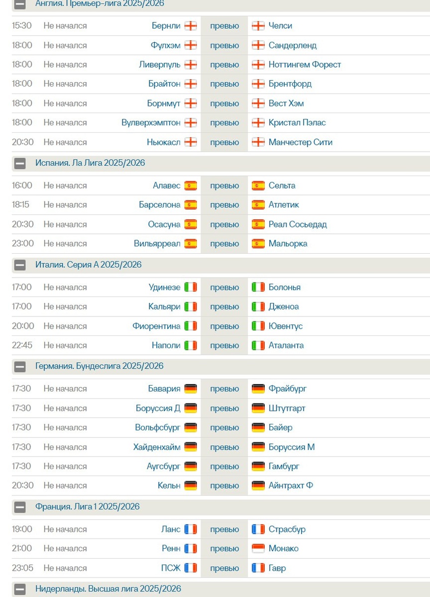 Матчи на сегодня