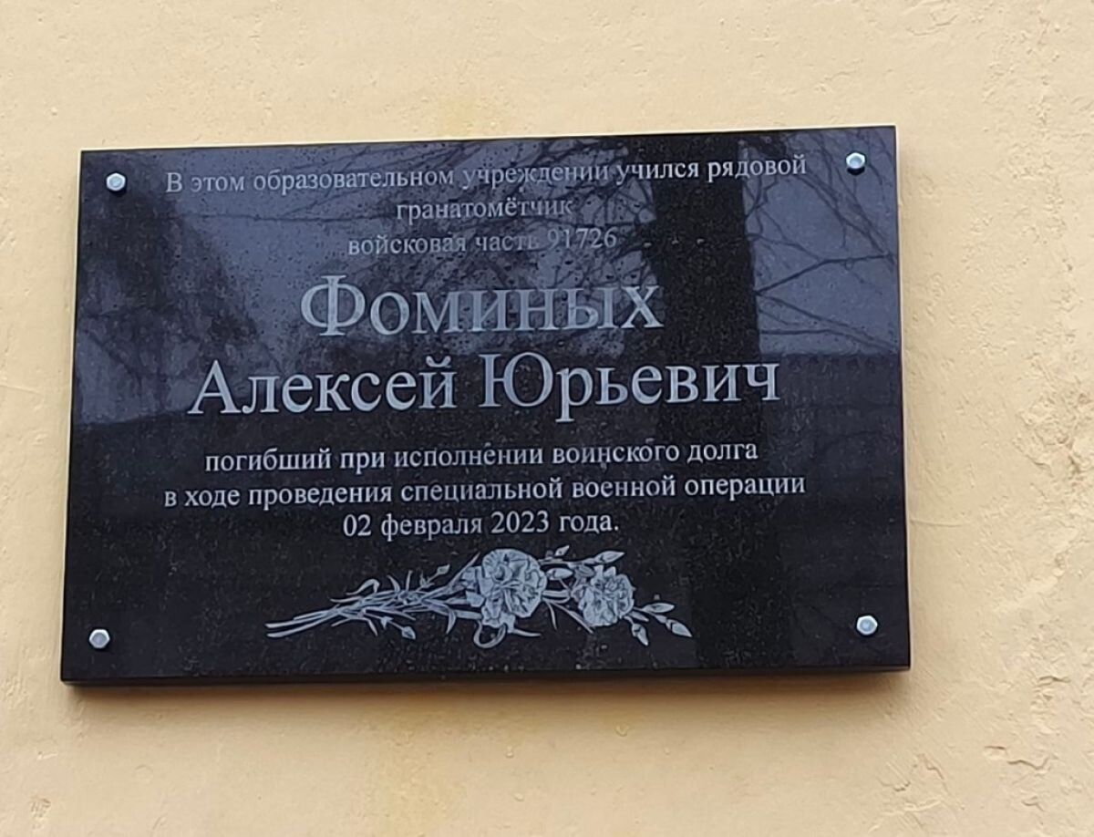 На здании Ливенского строительного техникума установили памятную доску выпускнику Алексею Фоминых, погибшему во время специальной военной операции. Об этом сообщает «Ливны. Уездный город». В церемонии открытия приняли участие родные погибшего, студенты, преподаватели, представители власти и духовенства. Алексей Фоминых окончил Ливенский строительный техникум, где запомнился как активный участник общественной и спортивной жизни. После учебы работал на предприятии «Промприбор». В октябре 2022 года его призвали на военную службу, а 2 февраля 2023 года он погиб при выполнении боевой задачи. В память о выпускнике в городском парке также высажено дерево с именной табличкой в Саду памяти.