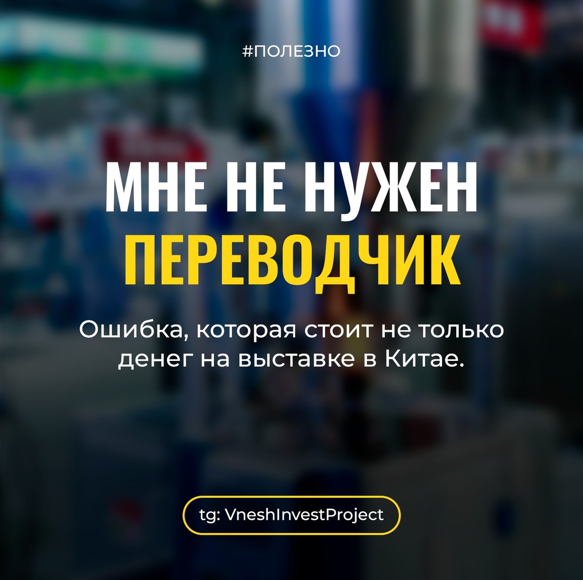 Мне не нужен переводчик, я говорю по-английски». Ошибка, которая стоит не только денег. Представьте: вы на выставке Canton Fair. Нашли идеального поставщика, обсудили все детали на английском. Партнер кивал и улыбался. А через месяц оказалось, что: • Условия контракта отличаются от договоренностей • Технические характеристики были поняты неправильно • Сроки поставки расслышали как «60 дней» вместо 16 🤔 Почему даже хорошего английского недостаточно на китайской выставке: Шумовые помехи: В выставочных зонах трудно разобрать нюансы речи. Специфическая лексика: Перевод технических терминов часто теряет точность. Культурный контекст: Китайские деловые партнеры избегают прямого отказа. Диалекты: Менеджер стенда может говорить на кантонском или другом диалекте. Как мы помогаем в Vnesh Invest Project на выставках: ✔️ Переводчики-отраслевики со знанием специфики вашей ниши ✔️ Сопровождение на стендах с фиксацией договоренностей ✔️ Экспресс-проверка документов прямо на выставке ✔️ Помощ
