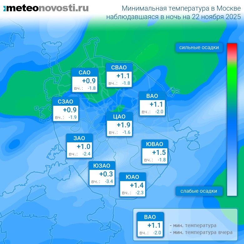 #за12часов #ночь Прошедшая ночь на 22 ноября была на 3.0°C теплее предыдущей