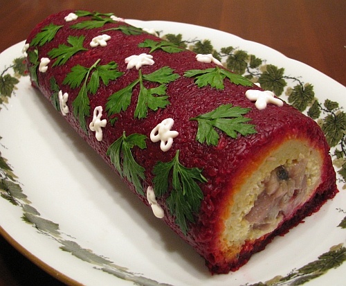 Есть некоторые блюда, которые менять – только портить. Селедка под шубой, на мой взгляд, это именно этот случай. Но иногда так хочется что-то поменять в знакомом до боли рецепте, чтобы всё было вроде как и по-старому, но на новый лад. Например, приготовить любимую селедку под шубой, но в виде рулета. Идея не новая, если погуглить, то можно найти много вариантов, но, к сожалению, во многих из них используется желатин, который абсолютно меняет и структуру, и вкус. Я же предлагаю изменить только форму, не меняя содержания. Конечно, вкус тоже немного изменится, но зато в таком виде селедку очень удобно нарезать на порции, что иногда очень немаловажно. Попробуйте приготовить! Для рецепта вам понадобится: