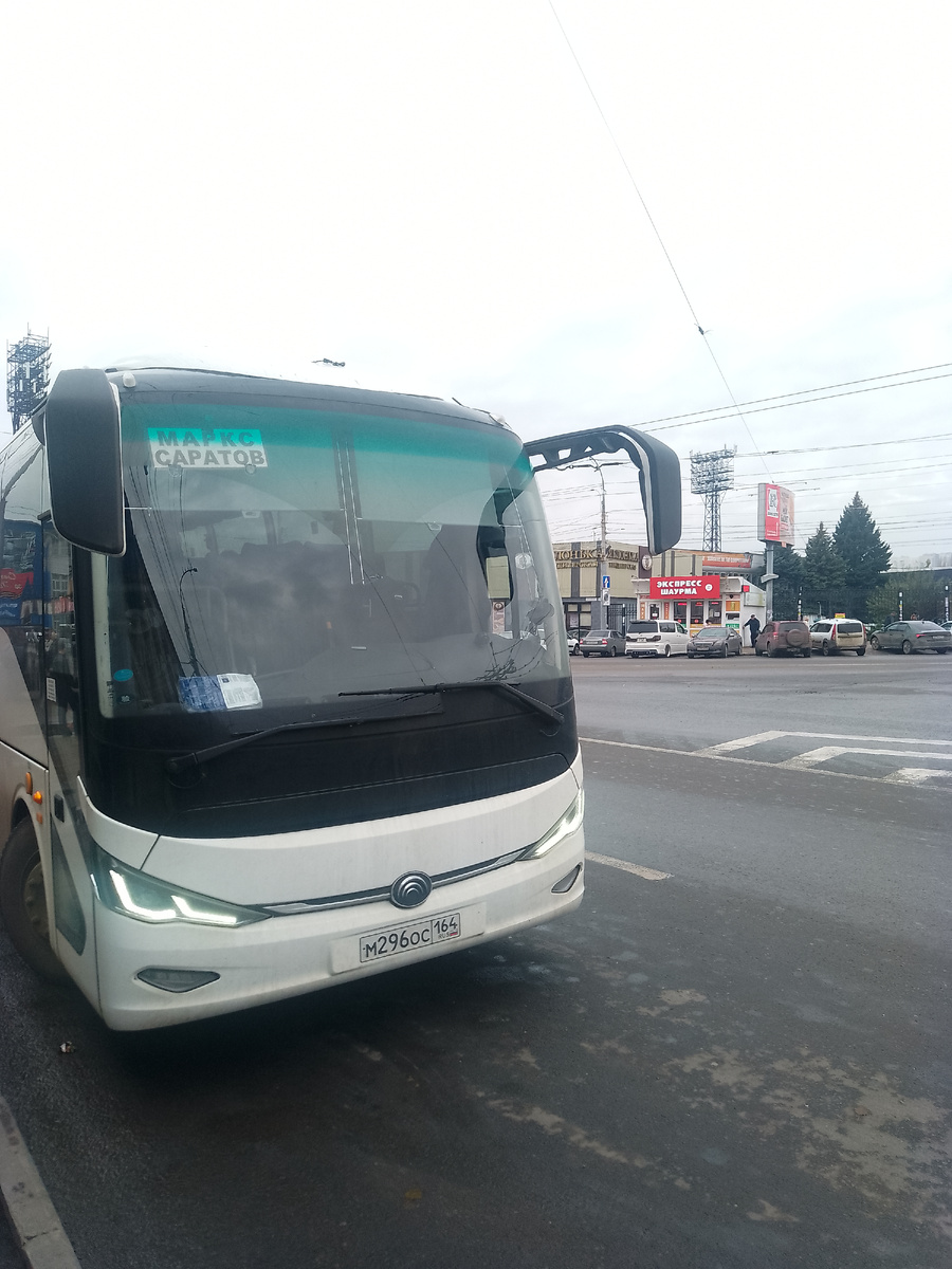 Автобусы Саратов - Маркс отправляются от автостанции по адресу: Улица Аткарская 66а. Это просто небольшое помещение с кассой в большом доме напротив ЖД вокзала. Туалета на станции не видел, возможно нет его. Виды напротив. А это водители устроили перекур перед автобусами. Билет стоил 400 рублей на одного человека в одну сторону. Это если брать в кассе. Можно купить онлайн в приложении Автовокзал Центральный. Там же можно посмотреть расписание. Автобусы ходят довольно часто, почти каждый час. Онлайн билет стоит дешевле - 388рублей. Автобус Саратов - Маркс - большой, Ютонг на 39 мест. Места для ног мне было достаточно. Но может быть и микроавтобус, типа Ивеко на 19 мест, смотрите в приложении, там пишут, какой автобус. Ехать примерно полтора часа туда. Обратно быстрее. туда ехали через Энгельс, обратно через Юбилейный. В Марксе автобус прибывает по адресу - проспект Ленина 36б. Рядом центральная улица и до центра идти минут 10-15 неспешным шагом. Вот такая автостанция в Марксе.