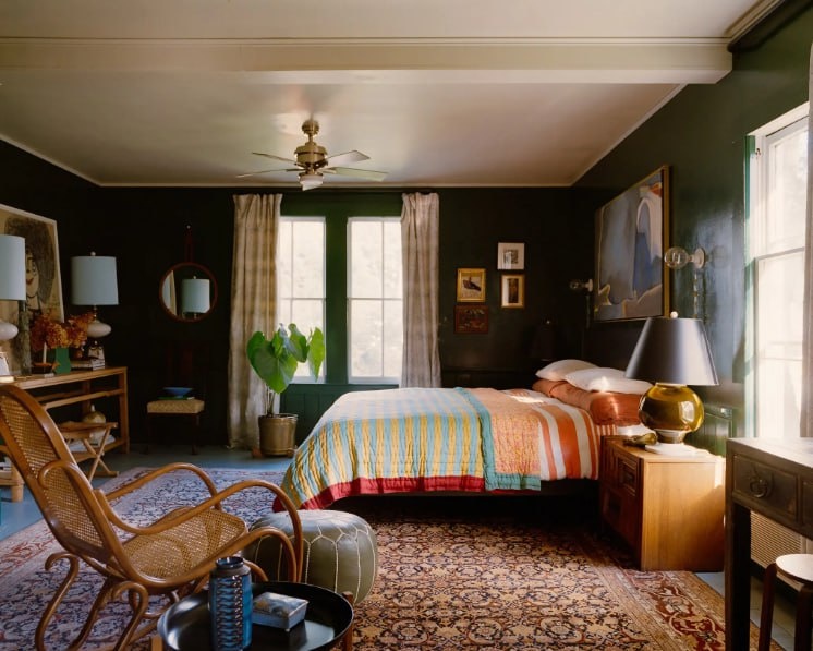 И еще о старых домах. Декоратор Мартин Борн купил дом 1830 года, в котором даже не было электричества. И оставил все скрипучие половицы, сведя преобразования к минимуму. Фактически он очистил дом от поздних наслоений, к примеру, виниловых обоев или старого ковролина. «Мне нравится, что дом полностью кривой, и приходится подкладывать кусочки пробки под ножки вещей, чтобы они стояли прямо», — говорит Борн. А еще заметьте, в доме многие стены покрашены в темные цвета. Что-ж, в нем два этажа, 500 кв. метров и всего два жильца, неудивительно, что им хочется сделать пространство камернее и уютнее.