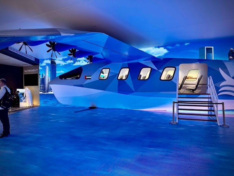 Американская компания REGENT на авиасалоне в Дубае представила полноразмерный макет своего пассажирского экраноплана Viceroy. Аппарат, способный перевозить 12 пассажиров или 1.6 тонны грузов на расстояние до 300 км, позиционируется как наследник советских разработок, но с современными технологиями.