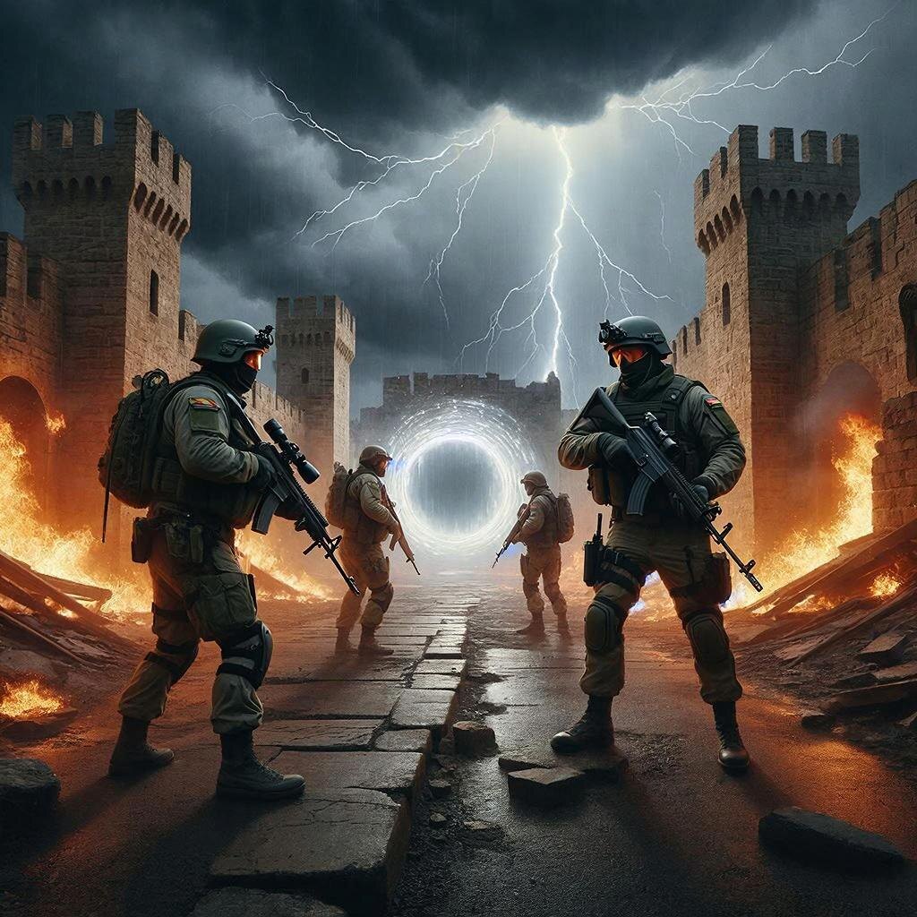Майор Иванов первым шагнул в портал. Остальные последовали за ним, ощущая легкое покалывание кожи и головокружение. Через мгновение они оказались... неизвестно где.