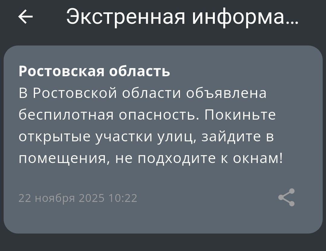 ‼️Экстренная информация РСЧС: В Ростовской области объявлена беспилотная опасность