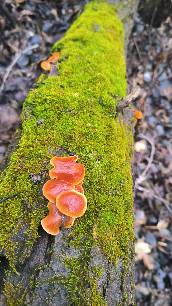 А вот на этот сваленный ствол вяза я уже приходила дважды и , кажется, через несколько дней еще раз приду. Погода благоприятствует.....Среди этого приятного серого пространства оранжевые огонечки очень радуют глаз. И вот они в кастрюльке....Уже отваренные! Теперь осталось залить приготовленным маринадом и прокипятить! Маринованные грибочки готовы! Даже в горячем виде!