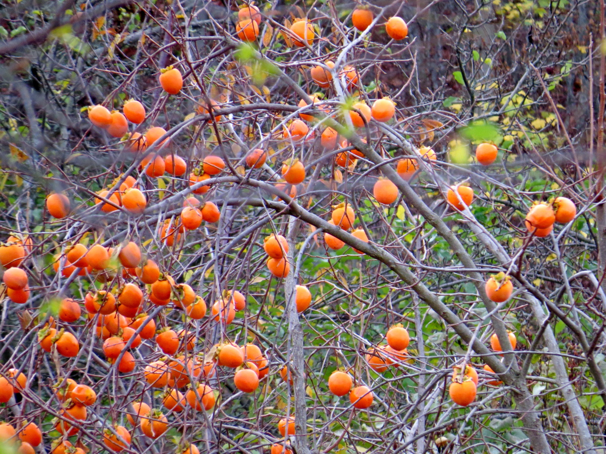 Междуречье встречает нас почти по-новогоднему. В каждом дворе стоят украшенные деревья оранжевыми шариками. Наступило время хурмы. Висит. Дозревает. Смотрится это удивительно нарядно и необычно. Оставляем машинку у крайнего домика и поднимаемся на дамбу. Как там озеро? Есть вода? Вода есть, но немного. Уровень упал метра на 4. Серое небо – серые кадры. Отражения окружающих гор висят, словно в воздухе. В такую серую погоду больше внимания привлекают склоны. Сухая трава, покрывающая склоны в это время смотрится волшебно! Практически на всех деревьях облетела листва. Лишь редкие бордовые пятна скумпии и невероятно желтые деревца, разбросанные по склону, говорят, что это осень. Оставляем озеро со стоящим над ним Андрюшей (Томакларын-Каясы) и присматривающей за ним Катюшей (хребет Хашки-Кая) и идем вверх по древней дороге. Название горы, по которой мы идем, решила перенести в следующее предложение, чтобы вы не замучились читать подряд столько непонятных названий. Гора