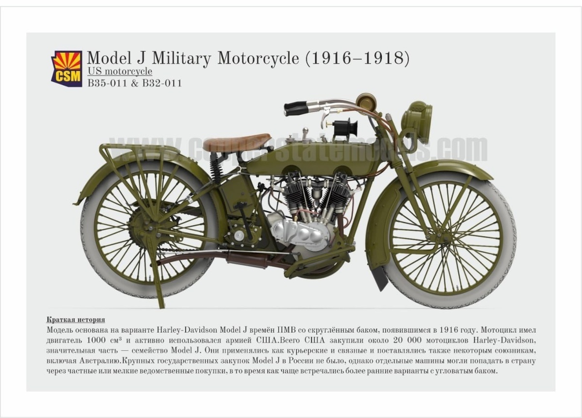 Copper State Models (CSM) из Риги в конце ноября выпустят на 3D-принтере модель американского мотоцикла Harley-Davidson Model J в масштабе 1/35, а затем и 1/32.