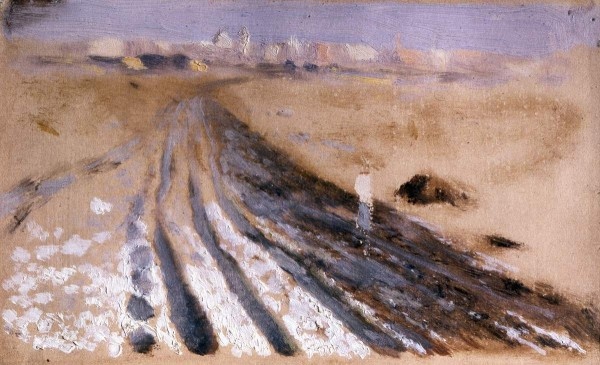 Степями приближается Донецкая зима. Пока что огрызается нацистская чума. В бетонные укрытия и в щели под дома Забилась недобитая нацистская чума. Немало прочесать ещё подвалов предстоит. Внимательней, товарищи, как учит замполит. Особенные лекции солдату не нужны. Проводим дезинфекцию по правилам войны. Не пожалеем времени очистить отчий дом. Чумную эпидемию отбросим за кордон. Вслед за отцами нашими зимой привычно нам Заразу вымораживать и жечь заразный хлам. Очистим территорию от морового зла. Российская история всегда такой была. А. И. Куинджи. «Дорога. Зима». Между 1890 и 1895. Государственный Русский Музей