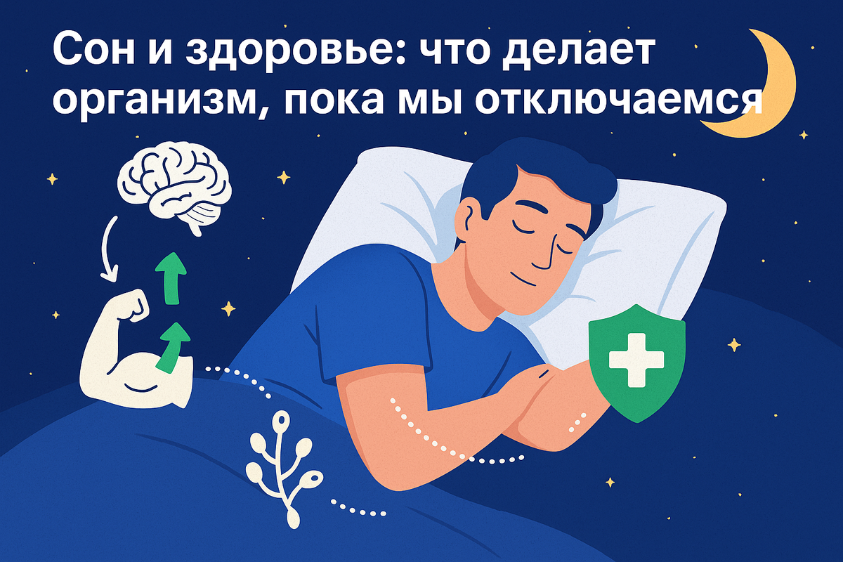 Иногда кажется, что ночью мы просто жмём на паузу. Но организм в это время трудится так, будто у него ночная смена. Пока мы спим, мышцы расслабляются, иммунитет «подтягивает хвосты», а мозг выбирается из завалов информационного мусора. Именно ночью лимфатическая система мозга вычищает накопившиеся за день токсины — от этого зависит, как мы будем думать и воспринимать мир утром. Этапы ночного путешествия Специалисты условно делят сон на три ступени. Сначала мы скользим в поверхностную дремоту — дыхание выравнивается, давление падает. Затем тело перестаёт реагировать на шумы и свет, будто ставит «не беспокоить». И уже в глубокой фазе запускается тот самый ремонтный цех: регенерация тканей, выработка соматотропного гормона, сборка аминокислот. Сновидения — всего четверть ночи, но мозг в это время «на подработке», обрабатывает эмоции и события дня. Почему недосып бьёт по здоровью Когда человек системно не высыпается, организм просто не успевает восстановиться. Память ухудшается, раздражите