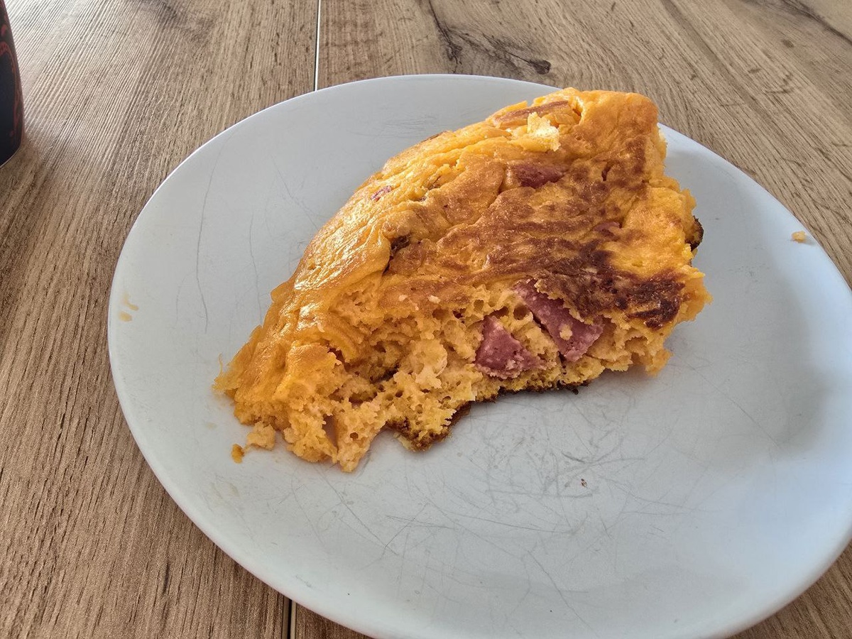 Всем доброго утра ❤️ Забыла вам сделать фото, до того как я преступила к трапезе😅 Вообщем всем приятного аппетита. На тарелке у меня пицца из сковородке😊