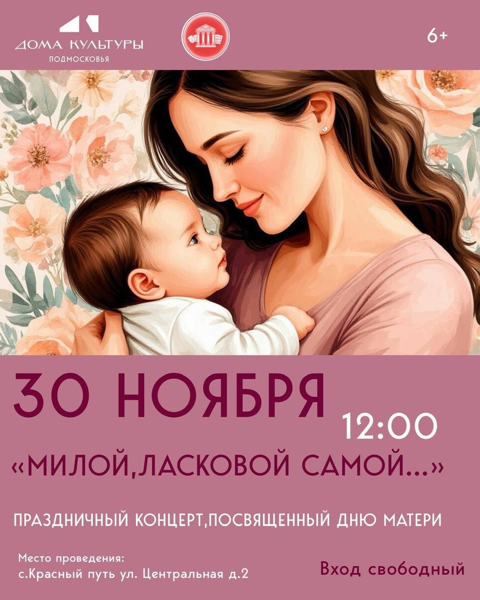 ✨ СДК «Русь» приглашает 🌸🌸🌸🌸🌸🌸🌸🌸 «Милой, ласковой самой…» - праздничный концерт художественной самодеятельности СДК . 🌸🌸🌸🌸🌸🌸🌸🌸 Наполним этот день улыбками и настроением вместе! 🚫 Возраст: 0+ 📆 30.11.2025🕒12:00 🏢 Сельский дом культуры (СДК) «Русь» 📍 г.о.Домодедово, с.Красный Путь, ул.Центральная, д.2 💰 Вход свободный❗️ ✅ Мероприятия Домодедово https://dzen.ru/id/66f10385cc4c5a16f7b5fb02 http://vk.com/domodedovo_events http://dzen.ru/domodedovo_events