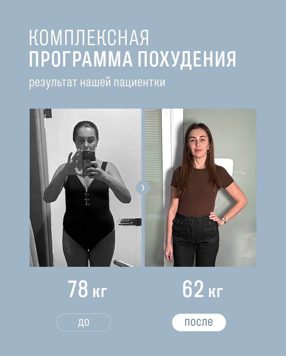 Сбросить до 16 кг за четыре месяца — реально, если работать под контролем врачей COSMOPRO и использовать правильно подобранную программу снижения веса. Как работает пептидная терапия? При регулярном наблюдении у врача и корректной дозировке организм перестраивается мягко и естественно: улучшается качество сна, повышается уровень энергии, снижается тяга к перееданию, исчезают вечерние «срывы», нормализуется обмен веществ. Вес начинает уходить без перегрузки организма. Каких результатов достигают наши пациенты: • минус 4–7 кг уже в первый месяц • снижение веса проходит комфортно — без строгих диет, срывов и стресса • результат остаётся, потому что меняется пищевое поведение Если хотите узнать детали программы или записаться — оставьте «+» в комментариях.