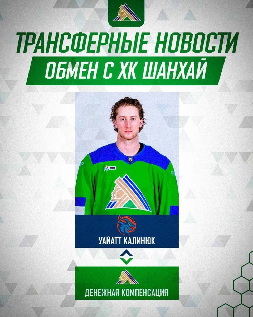 🐉 «Салават» прощается с легионером: Калинюк едет к «Драконам» Уфимский клуб официально объявил об уходе защитника Уайатта Калинюка. Канадец продолжит карьеру в китайском «Шанхай Дрэгонс». Взамен «Салават Юлаев» получил денежную компенсацию. По данным СМИ, речь идет о 10 млн рублей. Для Калинюка это уже второй переезд за осень. Он начинал сезон в «Ак Барсе», в сентябре перебрался в Уфу, но закрепиться не успел — всего 18 матчей и скромные 5 (1+4) очков в активе. В руководстве «Шанхая» рассчитывают, что мобильный защитник с опытом игры в НХЛ добавит команде скорости и поможет в большинстве.