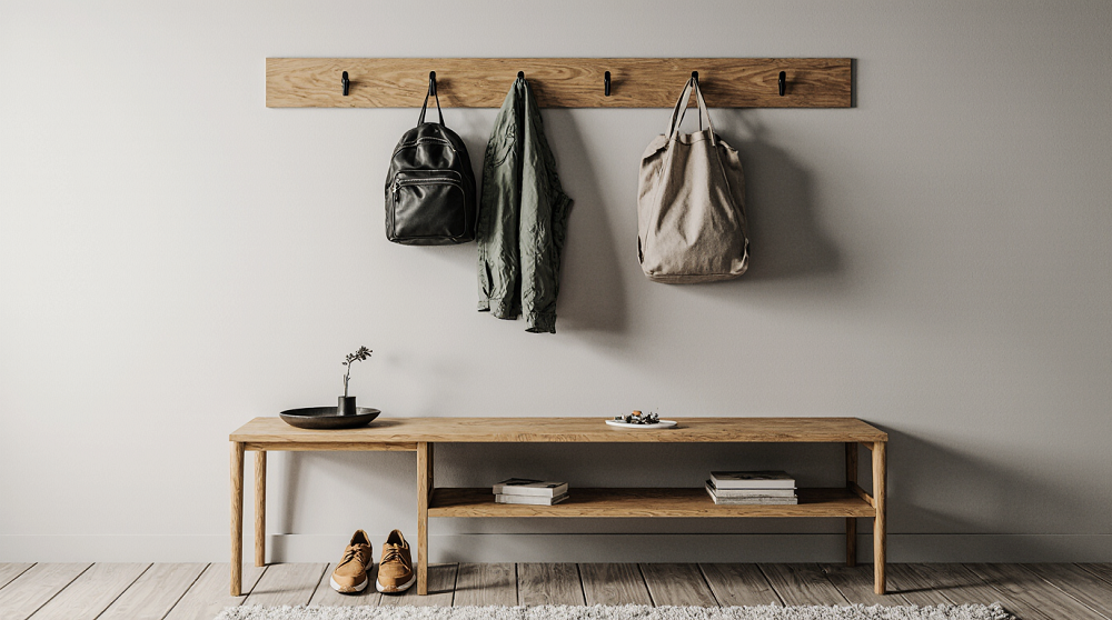Если одежда скапливается на стуле в спальне, поставьте рядом с ним мягкую банкетку или повесьте дополнительную вешалку на дверь. Если книги и журналы остаются на кухонном столе, поставьте там же небольшую этажерку или полку.