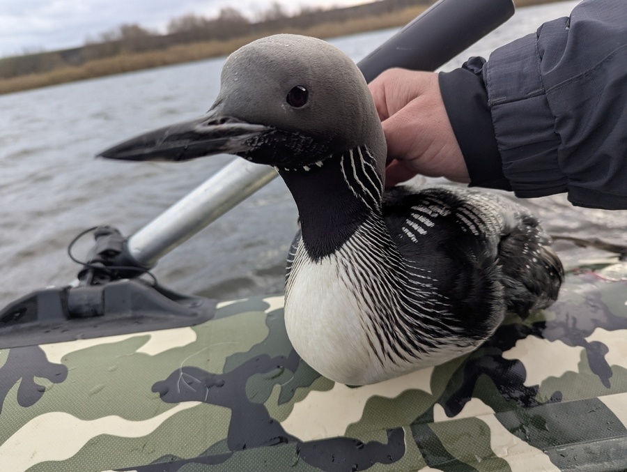 В Медвенском районе Курской области рыбак Денис Савельев спас чернозобую гагару, выпутав ее из браконьерских сетей. В процессе пернатая отчаянно сопротивлялась и даже покусала спасителя. У гагары ранена лапа. Но как отметили администраторы сообщества «Птицы города Курска», ей еще повезло, в сетях она наверняка бы погибла, как гибнут многие птицы. И добавили, что вблизи эту птицу мало кому удавалось рассмотреть. Чернозобая гагара занесена в Красную книгу. Численность популяции постоянно сокращается. Антон ФИЛИППОВ, фото Дениса Савельева, Птицы города Курска Постоянный адрес новости на сайте «Друг для друга» ~ https://dddkursk.ru/lenta/2025/11/22/123939/. Новости Курска за ~ 22 ноября ~ ноябрь 2025 года.