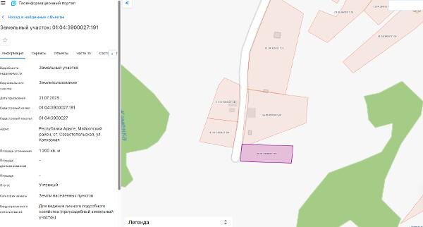 Название: Земельный участок с кадастровым номером 01:04:3900027:191, площадью 1200 кв
