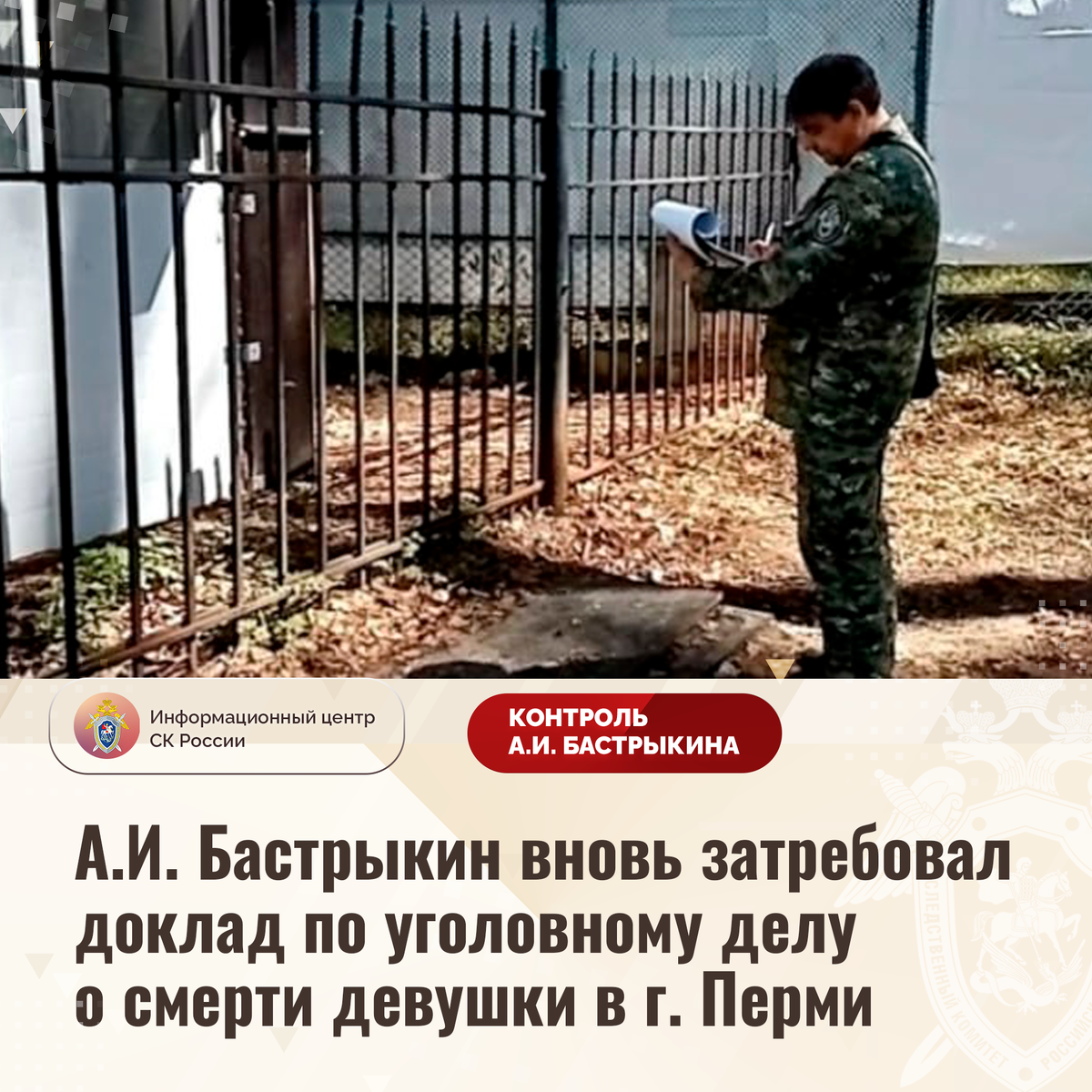 А.И. Бастрыкин вновь затребовал доклад по уголовному делу о смерти девушки в г. Перми В комментариях в аккаунте Информационного центра СК России «ВКонтакте» опубликовано обращение по вопросу несогласия с ходом установления обстоятельств смерти 18-летней девушки в городе Перми. В мае текущего года тело девушки обнаружено возле местного бара. Общественностью выдвигаются различные версии произошедшего, в том числе высказывается предположение о возможной причастности мигрантов и подруги к совершению преступления. До настоящего времени виновные лица не установлены и к ответственности не привлечены. Указанная ситуация освещалась в сети Интернет. А.И. Бастрыкин ставил ее на контроль в центральном аппарате ведомства. В СУ СК России по Пермскому краю расследуются уголовные дела. Председатель Следственного комитета Российской Федерации Александр Иванович Бастрыкин вновь затребовал у руководителя СУ СК России по Пермскому краю Дениса Валерьевича Головкина доклад о предварительных и окончательных