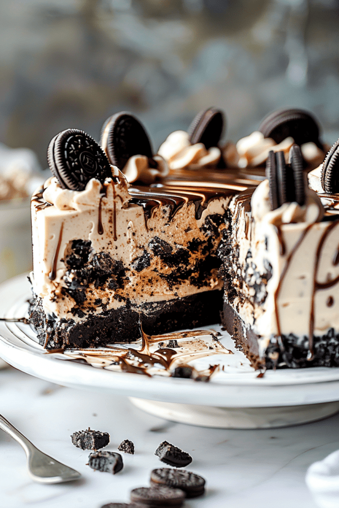 (Невероятно насыщенный десерт без выпечки) Это настоящий "тяжелый люкс" в мире десертов. Шоколадная основа из знаменитого печенья, густой сливочно-арахисовый слой и шапка из блестящего шоколадного ганаша. Готовится просто, а вкус — как в дорогой кондитерской. Для этого рецепта критически важна хорошая разъемная форма (чтобы красиво достать торт) и мощный миксер для кремовой текстуры.