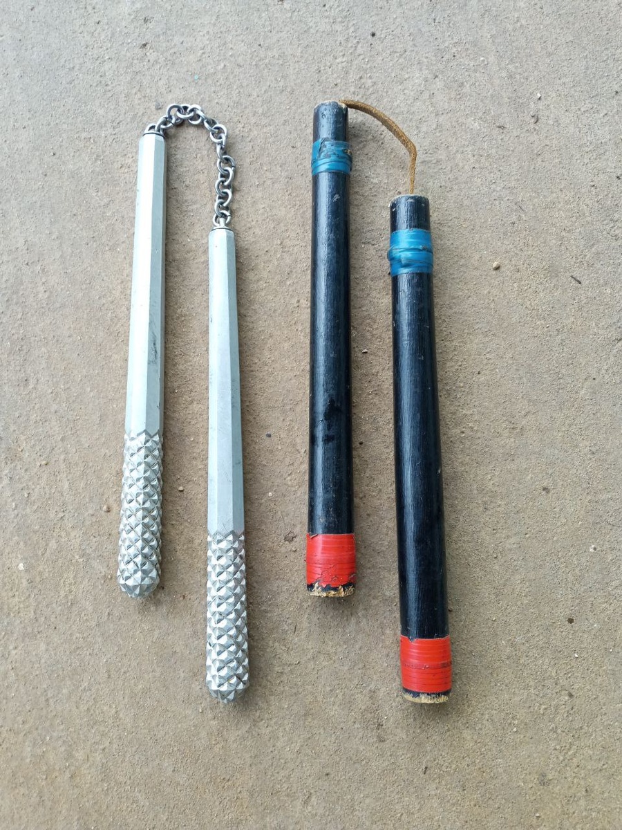 Когда то давно, а вроде бы и совсем недавно, когда в моде были видеосалоны и забугорные боевики, практически вся молодёжь была на спорте, пытаясь не просто быть "быстрее, выше, сильнее", а ещё и похожими на своих кумиров, пачками укладывающих врагов налево и направо голыми руками. Молодёжь конца 80-х и начала 90-х массово пропадала в "качалках" и спорт клубах, увлекалась такими диковинными на тот момент единоборствами. Кстати говоря, перед вами одно из модных изделий того времени - нунчаки (нунчаку) - восточное инерционное холодное оружие ударного, ударно-раздробляющего и удушающего действия. Используется в боевых искусствах, таких как окинавские кобудо и каратэ и т.д. Злые языки утверждают, что это оружие на самом деле являлось всего лишь тренировочным, но 30 лет назад с мерцающих экранов бойцы с криком "кия-я-я!" лупили этими самыми нунчаками друг друга и крошили мебель. Пацаны во дворах, уставшие ходить стенка на стенку с кастетами и выкидухами голыми кулаками, да и чтобы произвести