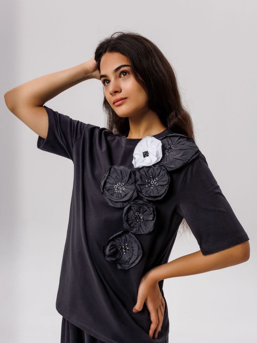 Яркая блуза с дизайнерскими украшениями. Позвольте себе выглядеть необычно.